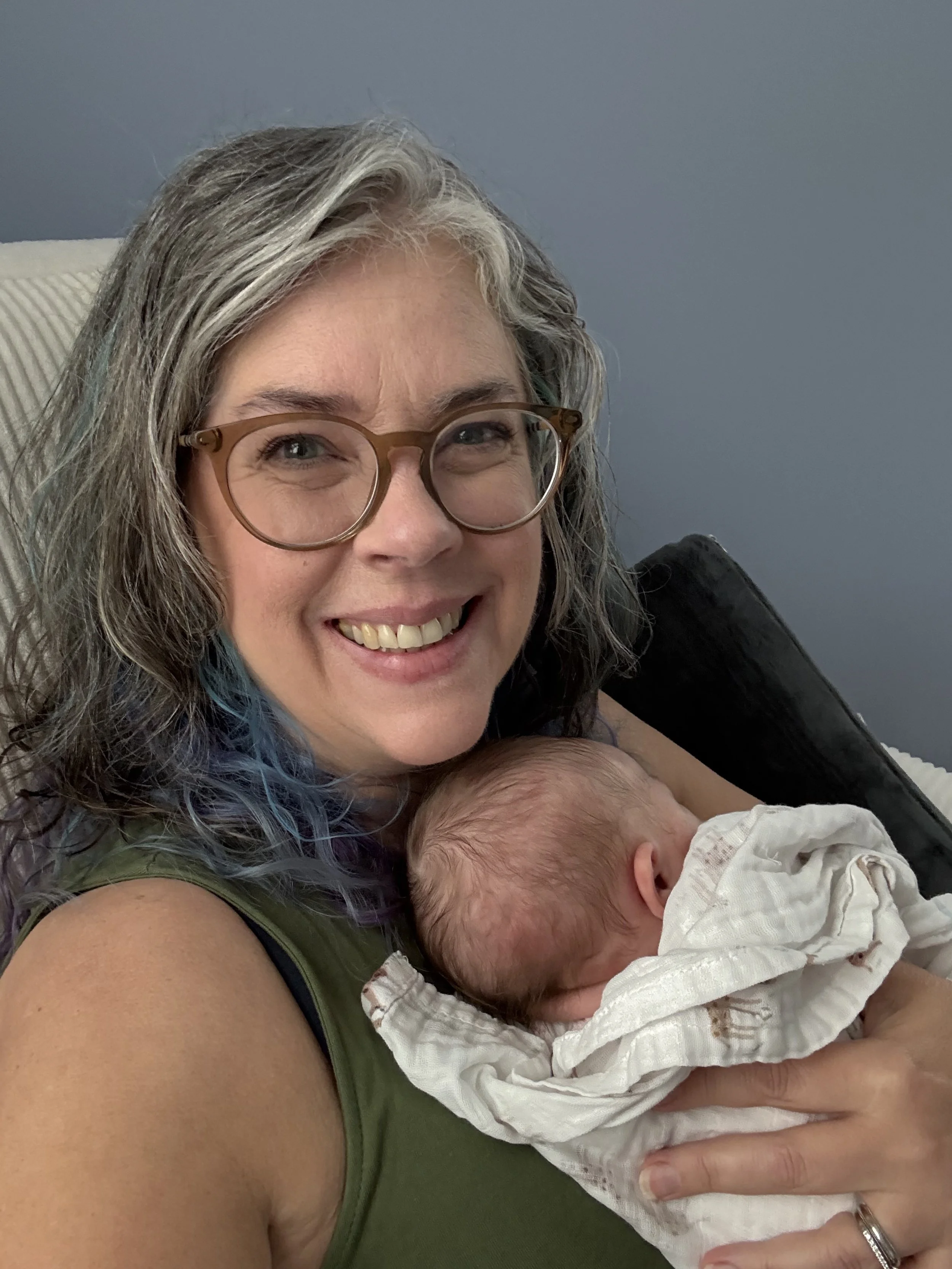 It helps that my grandbaby is an amazingly wonderful baby, who is excellent at all the things newborns are supposed to do: eat, sleep, grow, poop, etc. Truly the only downside (or is it an upside? depends on the day and who you ask) is that little P is a contact sleeper, which means she only sleeps if held. (She houdinis herself out of swaddles and startles awake otherwise—she’s very clever.)
